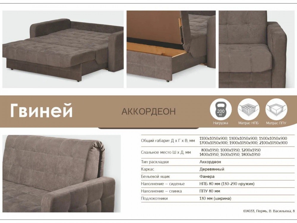 Диван Гвиней 800х1950 в Аше