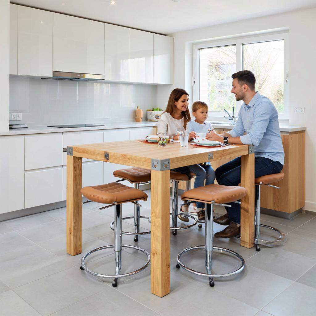 Почему табуреты популярны для кухни? Во-первых, они занимают минимум места и легко помещаются под столешницу или барную стойку, освобождая проходы. Во-вторых, современные модели отличаются разнообразием дизайна, материалов и цветов, что позволяет подобрать оптимальный вариант под любой стиль — от классики до хай-тека. Кроме того, табуреты часто выбирают семьи с детьми или любители частых посиделок с друзьями, ведь их легко перемещать и использовать по мере необходимости.